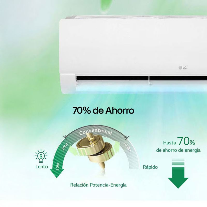 La tecnología inverter mejora la eficiencia de tu equipo, potencia su capacidad de refrigeración y proporciona una temperatura más estable.