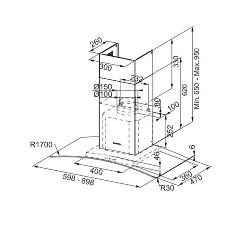 Campana de cocina 90 cm RAY, en acero inoxidable y vidrio, modelo 6306-710, comandos soft touch, equipado con 1 motor de 140w, doble turbina, 3 velocidades, con 2 iluminación halógena de 20 watts, con un caudal de 420 m3/h (vel. 1), 580 m3/h (vel. 2) y 820 m3/h (vel. 3), consumo de 65w, 90w y 140w respectivamente. La campana de cocina 60 cm RAY de acero inoxidable tiene incluído el cubre caño extensible (mínimo 650 ? maximo 950 mm), filtro de grasa metálico autoportante. El motor de la Campana de Cocina 90 cm de 140w tiene un nivel sonoro de 42 db en su primera velocidad, 48 db en la segundo y 61 db en la máxima y vence una presión de hasta 25 mm H2O. Garantía 1 año.