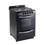 Cocina Multigas, 4 hornallas, puerta horno visor parrilla, rejillas simil fundición, válvula de seguridad en horno y hornallas, Negra