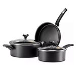 Set 5 Piezas Marmicoc -Sabores (Cacerola C/Tapa 24Cm, Olla C/Tapa 20Cm, Sarten 24Cm)Color Negro Aluminio de primera calidad
