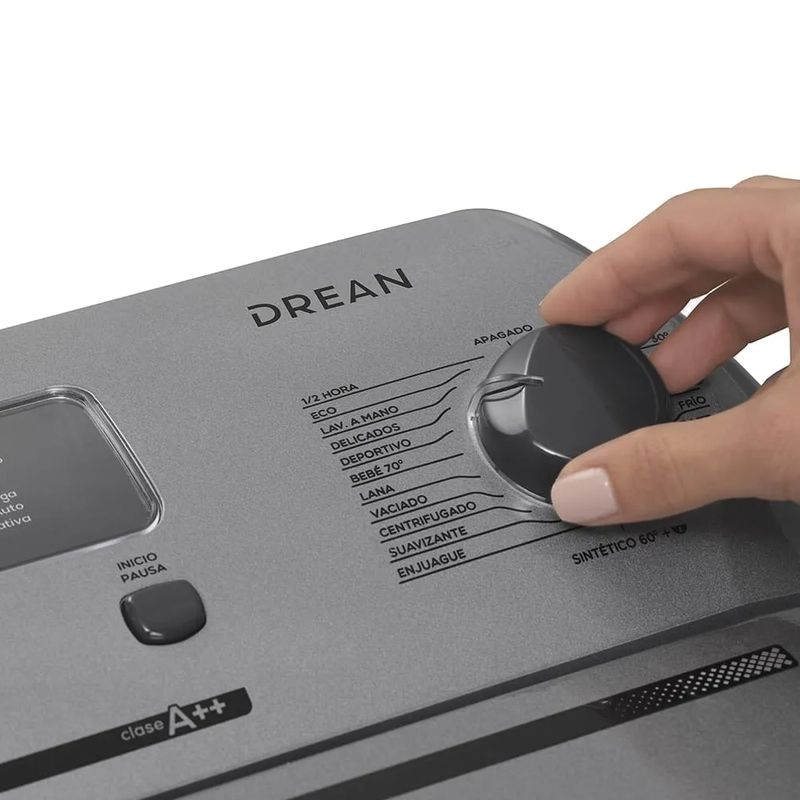 El lavarropas gris Drean Gold 10.8 SI es un lavarropas de carga superior y diseño súper delgado ideal para espacios pequeños o reducidos. Por otro lado, gracias a sus patas niveladoras, es posible ubicarlo en cualquier punto.