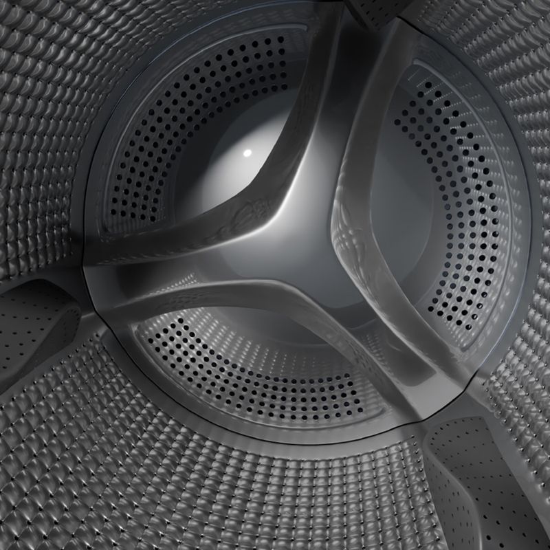 El Tambor Pillow Drum, con 560 almohadillas de 2,2 mm cuida tus prendas más delicadas. Gracias a la tecnología de soldadura láser, el tambor no presenta imperfecciones, logrando un deslizamiento suave que evita fricción y mantiene tu ropa como nueva.