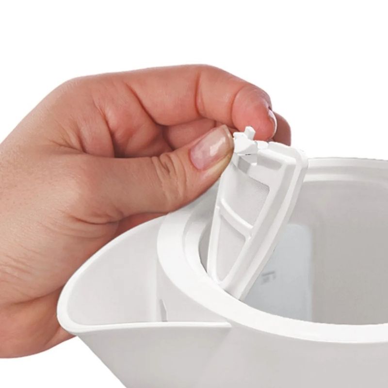 Además, incorpora un práctico sistema de apertura de tapa con traba de seguridad y un filtro de partículas extraíble y lavable, para que disfrutes de un agua más limpia y pura en cada preparación.