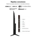 Dentro de la experiencia Google TV, la V6C permite conexión por Bluetooth 5.0 para parlantes, auriculares y accesorios. Además, cuenta con Wi-Fi de 2.4 GHz y 5 GHz para una transmisión estable, y puertos USB para reproducir archivos o conectar periféricos. Todo pensado para que armes tu ecosistema de entretenimiento sin cables y sin complicaciones.